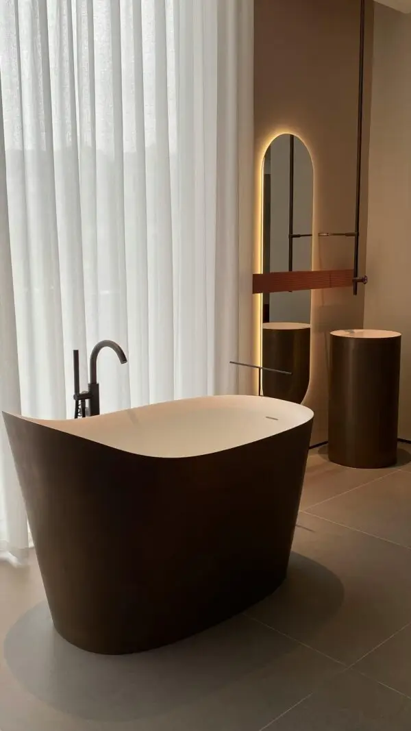 From statement bathtubs to floor-to-ceiling detail, discover materials that don’t just fill a room — they shape it.