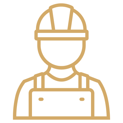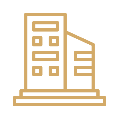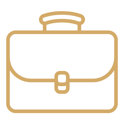 Briefcase and document icons suggest project handling capabilities for large-scale commercial and residential clients.