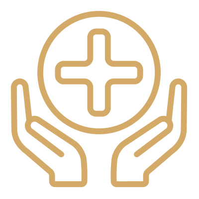 Medical cross or protection icons suggest product safety, hygiene, and environmentally safe manufacturing processes.