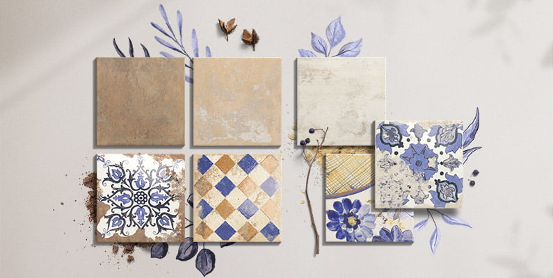 Drawing inspiration from natural earth tones and time‑worn architectural surfaces, the Land Anthology collection blends subtle elegance with vintage flair. The base colors—Soft White, Cream, and Cotto—feature a matte finish with gentle gloss accents, mimicking the allure of aged stone. Decorative pieces like Centro Quintesence, Anthology White/Cotto, and Native Cream feature classic floral, geometric, or patterned motifs that enhance the collection’s timeless charm.